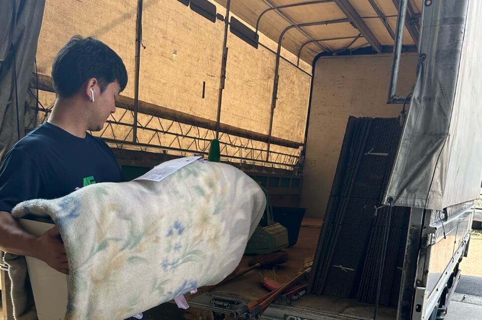 スタッフが到着し、丁寧に荷物を搬出します。家具や大物はしっかりと保護し、安全に運び出します。